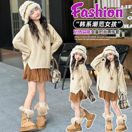 布丁果果&韩版毛衣百褶裙套装